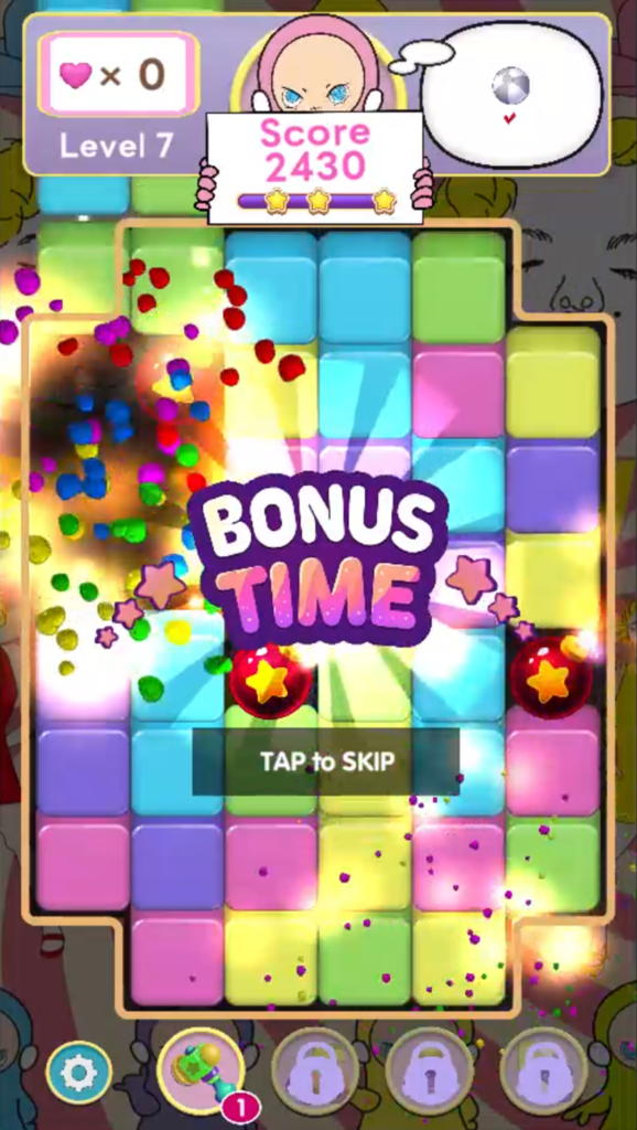 “生意気でKAWAII”キャラクターであるCHEEKEYの愛らしさ、そしてカラフルでアーティスティックなビジュアル が、シンプルなタップパズルのゲームプレイと融合しています。