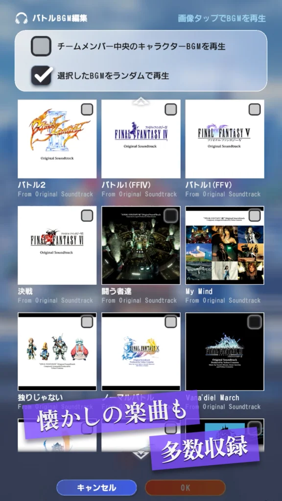 チュートリアルを進めると、まずウォーリア・オブ・ライト、ティナ、クラウド、ライトニングの4人から初期キャラを1人選びます。その後、「アビリティ10連ガチャ」と「キャラクター10連ガチャ」を引くことができますが、これらは何度でも引き直しが可能です。 理想のUR(ウルトラレア)アビリティを複数枚引くまで粘ることができ、最初から好きなキャラと強力な装備でゲームを開始できる点は非常に良心的です。ただし、完璧な結果を求めすぎると数時間かかることもあるため、ある程度の妥協も必要かもしれません。