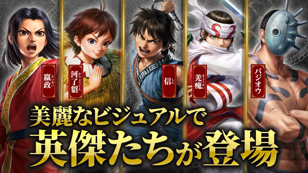 『キングダム 覇道』は、古代中国の戦国七雄の争乱を描いた人気コミック・アニメ「キングダム」を題材とした新作スマホゲームです。