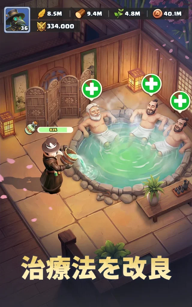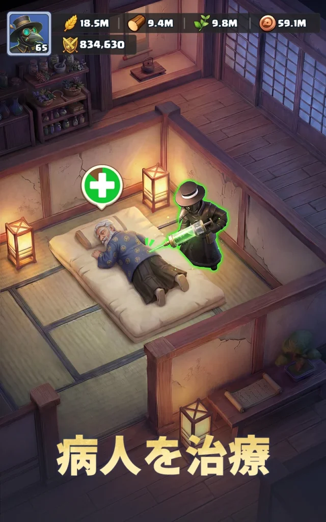 主に管理すべきは以下の3つの主要資源です。 木材:建物の建設や施設のアップグレードに不可欠です。 ハーブ:すべての医薬品の基礎となる、病院経営における最重要素材です。 食料:増え続ける避難民やスタッフの生存を維持するために必要です。