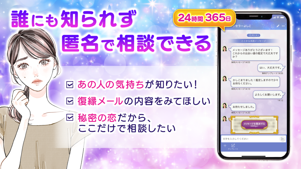 - 深夜や早朝に相談したい方:24時間営業のため、思い立った時にすぐモヤモヤを解消できます。