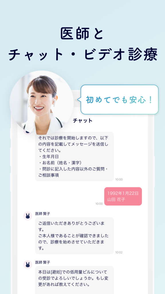 - 診療予約と調整: アプリ内のチャット機能を通じて、医師とのビデオ通話の日時を調整します。事前に心配なことをチャットで相談しておくことも可能です。