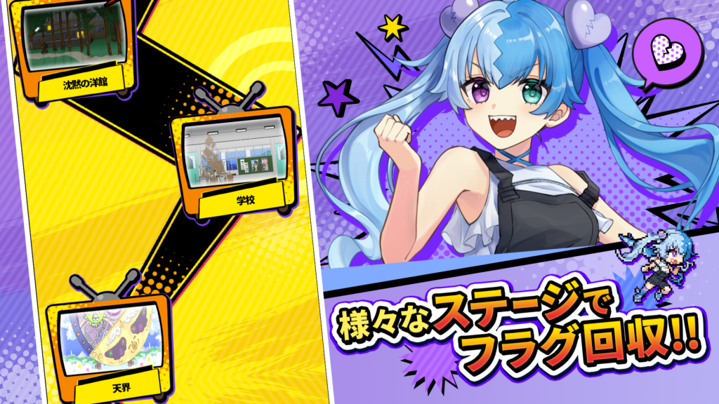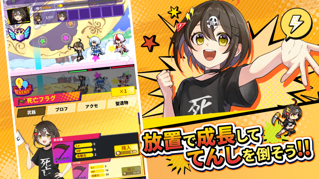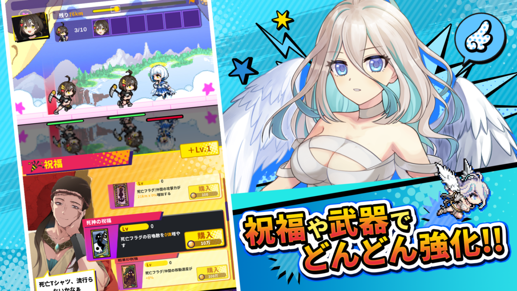 キャラクターデザインも秀逸で、フラグちゃんや仲間たちだけでなく、敵として現れる天使軍も可愛らしいデザインである点が評価されています。大量のキャラクターと共に一気に敵を倒せる爽快感が、このゲームの「クセになる作品」たらしめている要因です。
