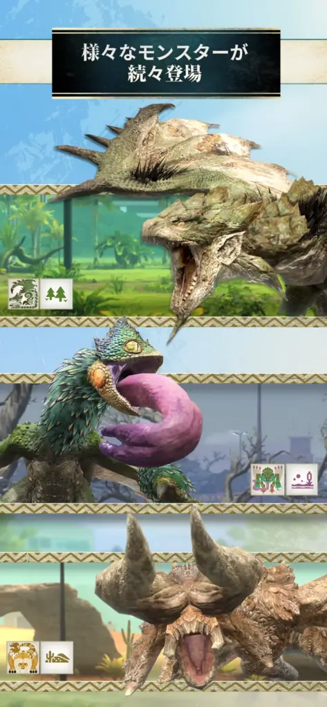 - 手軽にモンスター狩り: スマートフォンで手軽にモンスターハンターの世界を楽しめます。