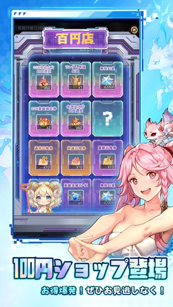 - 利益還元パック: 80円でガチャチケット10枚を含むセットが購入できるなど、駄菓子を買うような感覚で戦力を強化できます。