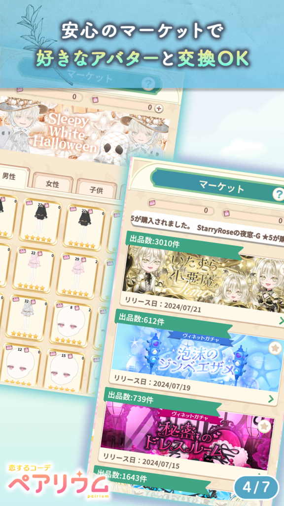 『ペアリウム』は、基本無料で遊べるように設計されています。ログインボーナスやイベント報酬、初心者特典などでガチャチケットやコーデ素材が手に入るため、無課金でも一定レベルまでは十分に楽しめます。