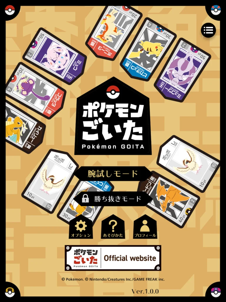 『ポケモンごいた』は、この伝統ある「ごいた」をポケモンのキャラクターで表現し、誰でも無料で遊べるようにしたレクチャー&ミニゲームアプリです。「基本プレイ無料」でありながら、対人戦ではなくCPU戦を通じて、リアルボードゲームとしての「ポケモンごいた」のルールを学ぶことに特化した作りになっています。