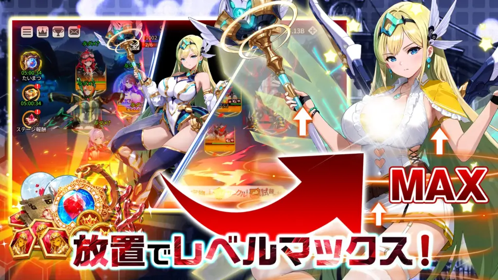 本作のゲームシステムは、放置系RPGの快適さと、美少女育成ゲームならではの交流要素が組み合わさっています。