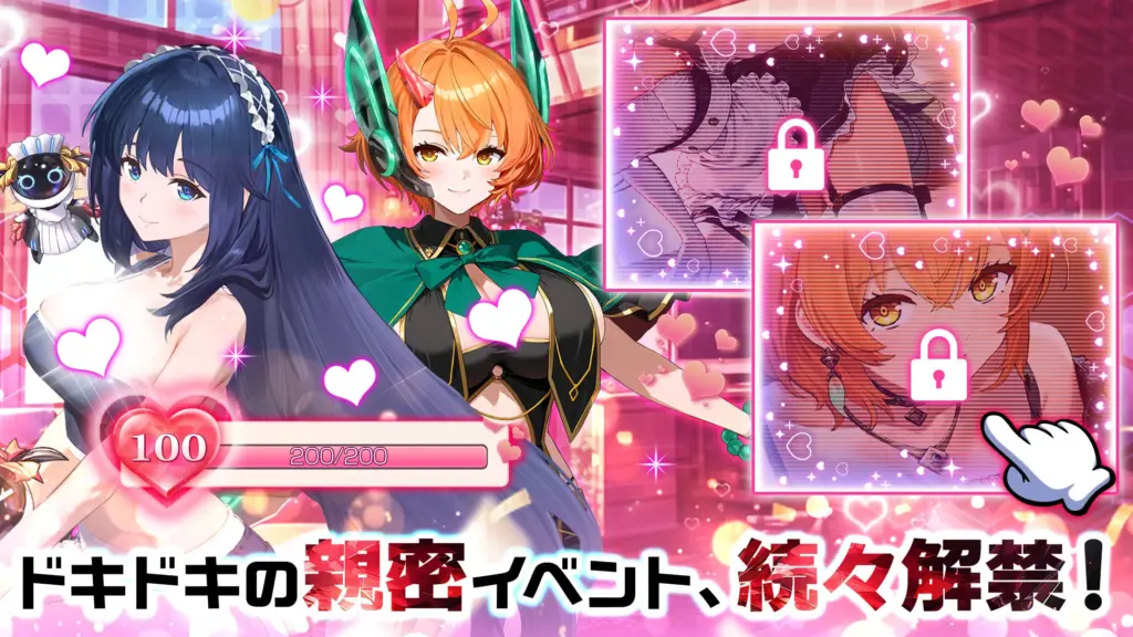 本作ではキャラクターに親密度が備わっており、美少女たちとの仲を深めることがゲームの重要な要素となっています。親密度を高めることで、特別な親密イベントや限定ストーリー、さらにはビジュアル演出(CG)も解放されます。これは美少女キャラとの交流を重視するユーザーにとって、大きなやり込み要素となります。シナリオとバトルを両立して楽しめる仕組みであり、ファン層に強く訴求するポイントです。
