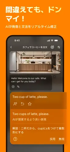 自分の発言が文法的に正しくても、実際の会話として不自然な場合には、AIがより適切な言い回しを教えてくれます。