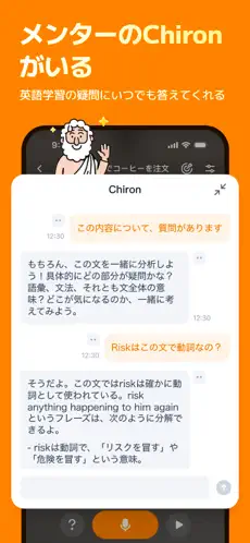 - 復唱チャレンジ: お手本のセリフを聞き、字幕を参考にしながら発音する練習。