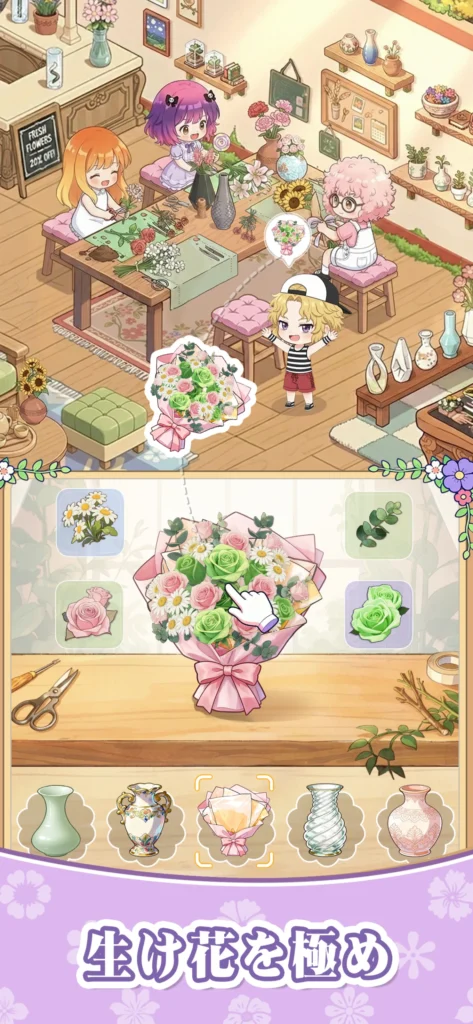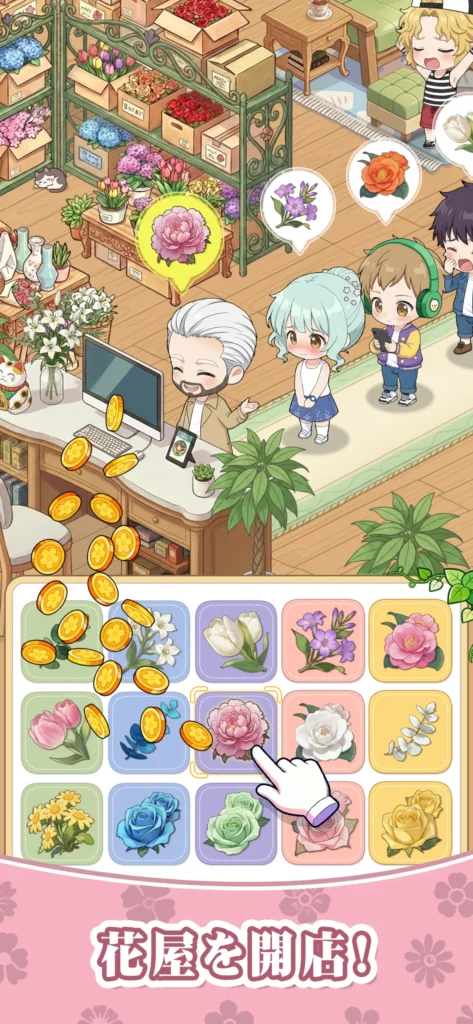 - 収穫・販売: 咲いた花を収穫し、NPCやフレンドに販売してコインを稼ぎます。