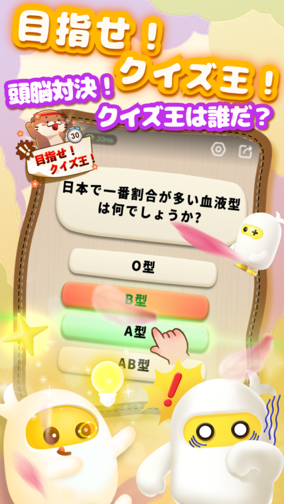 - 脳力バトル・目指せ!クイズ王!:天文学からポップカルチャーまで、あらゆるジャンルの問題が出題される早押しクイズバトルです。1分間の制限時間内に、全国のプレイヤーと知識や瞬発力を競い合います。学びと刺激が融合した最高の知的エンターテインメントです。