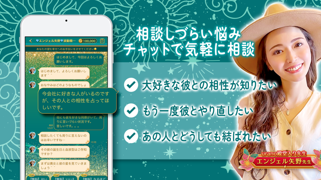 従来の対面占いや電話占いが、予約が必要で診療時間が決まっている専門病院だとすれば、「ウラーノ」は24時間365日、誰にも見られずに、メッセージを送るだけで、心理学の専門知識を持った先生に相談ができる、という環境を提供します。料金も文字数で決まるため、診療時間(通話時間)を気にせずに自分のペースでメッセージを送信できます。また、「相談シート」という問診票を通じて、専門家の方から「あなたに合った先生ですよ」と声をかけてくれるため、数ある専門家の中から誰を選べばいいか迷う手間も軽減されます。これにより、時間や場所の制約、そして心理的な抵抗感を乗り越えて、気軽に専門的なケア(鑑定)を受けられるのです。
