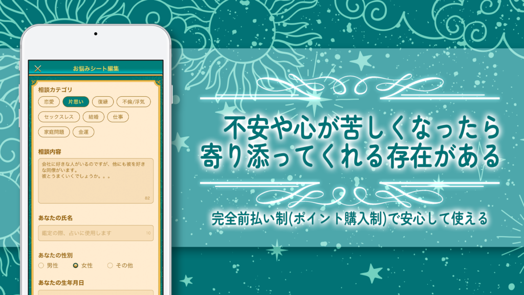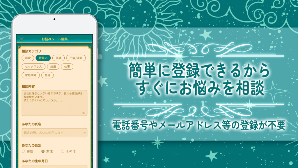 1-2. 占い師とのマッチングを円滑にする「相談シート」機能